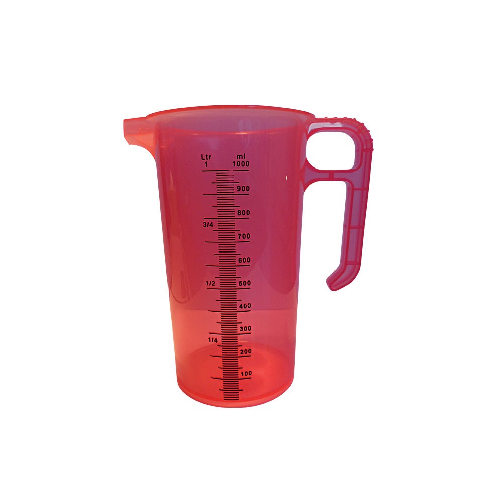 The Measuring Jug 1L Red Food Grade Pro-measures is designed for precision and durability in various professional settings. Made from coloured clear polypropylene, it features raised increments marked by hot foil for permanent, easy-to-read measurements. Its unique spout design ensures excellent pouring control, reducing spills and improving efficiency.