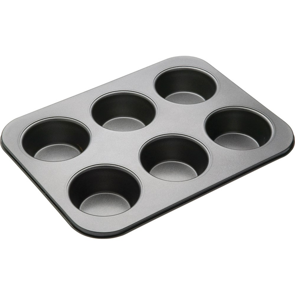 With 6 round baking moulds each measuring 9x4cm, this heavy duty non-stick pan is ideal for baking muffins, mini pies and Yorkshire puddings. Featuring a double non-stick coating to minimise pastry case breakage, and rolled rims to ensure maximum durability, food release has never been easier. MasterPro is a professional grade kitchenware brand designed for superior function, durability and style. With a continually expanding product selection covering everything from food preparation to kitchen storage solutions, MasterPro is your all-encompassing kitchenware specialist.
