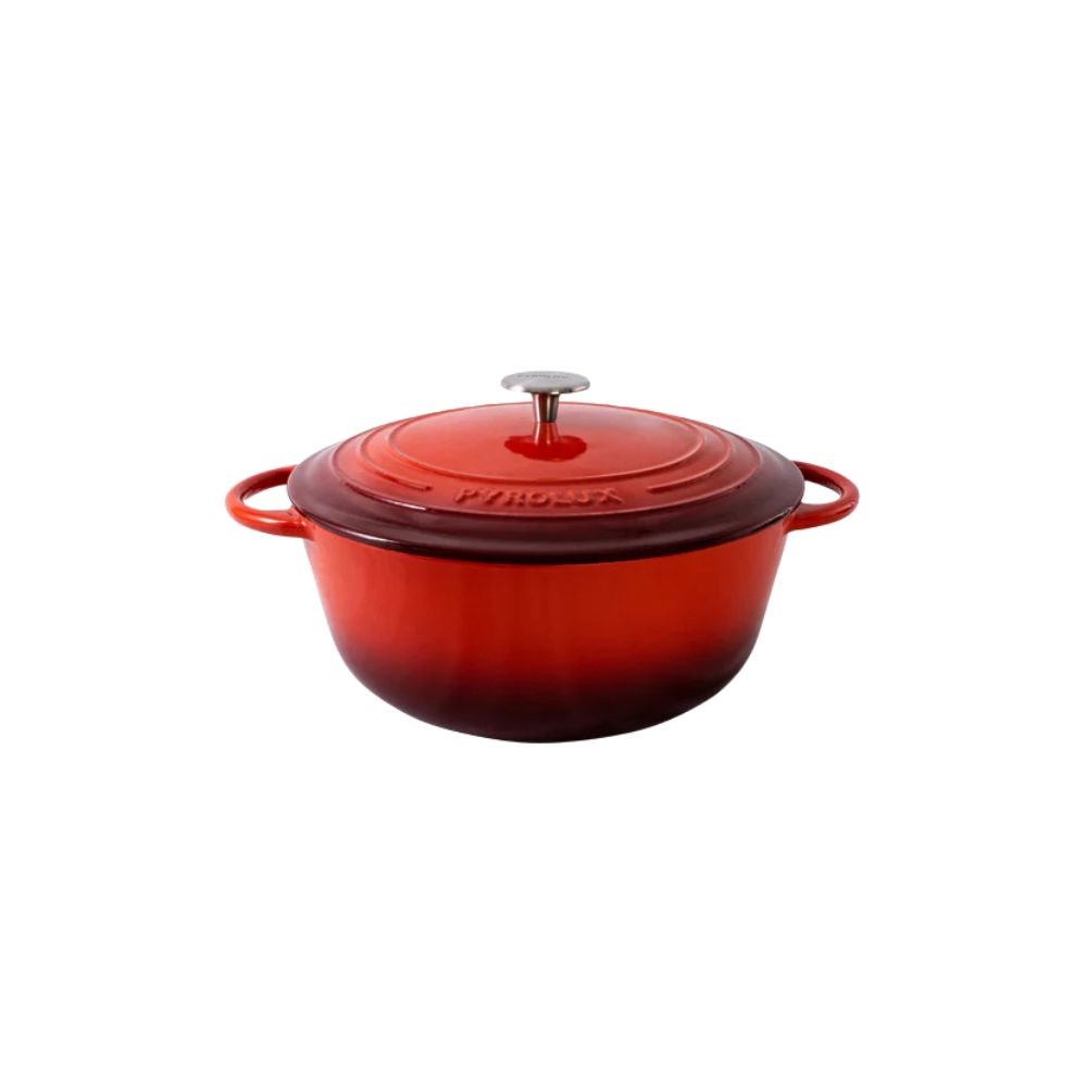 The Pyrochef French Oven Round 240mm 4L Chilli Red by Pyrolux is ideal for casseroles, stews, soups, roasts, sautéing, and baking. Its cast iron construction ensures even heat retention with no hotspots, while the ultra-smooth 3-layer enamel coating offers durability and easy cleaning. Designed with improved technology, it's up to 40% lighter than similar cookware, making it easier to handle from cooktop to oven to table.