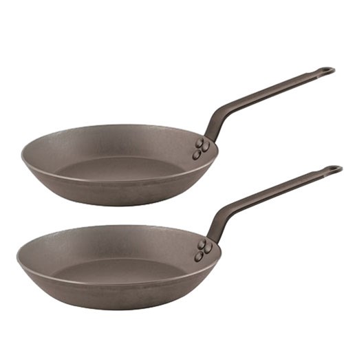 These traditional French frypans variously referred to as iron frypans, black steel frypans or carbon steel, are strong and durable.
