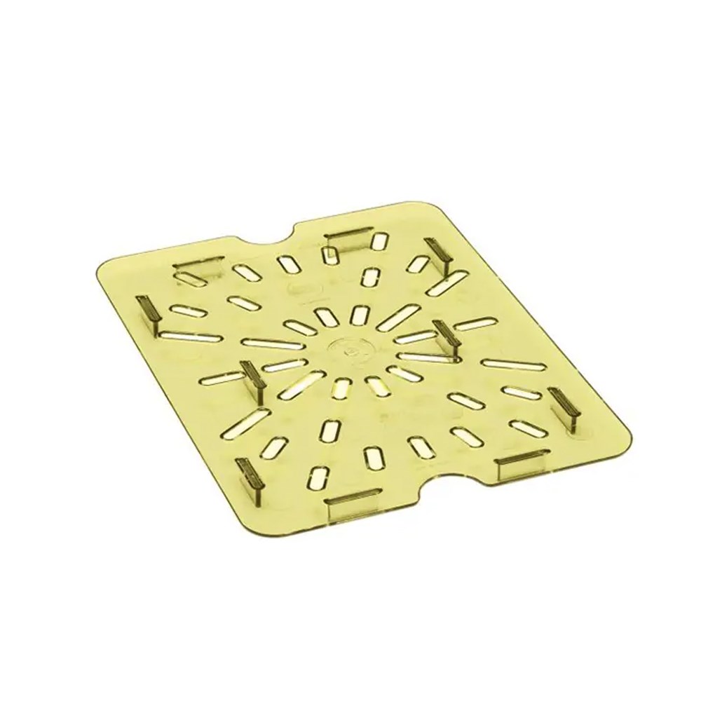Ideal for commercial kitchens, the Drain Shelf 1/2 Amber Cambro ensures the safe and efficient storage of food, providing reliable performance in both high and low-temperature environments. Its durable construction makes it a practical solution for maintaining food quality and freshness in a variety of settings.