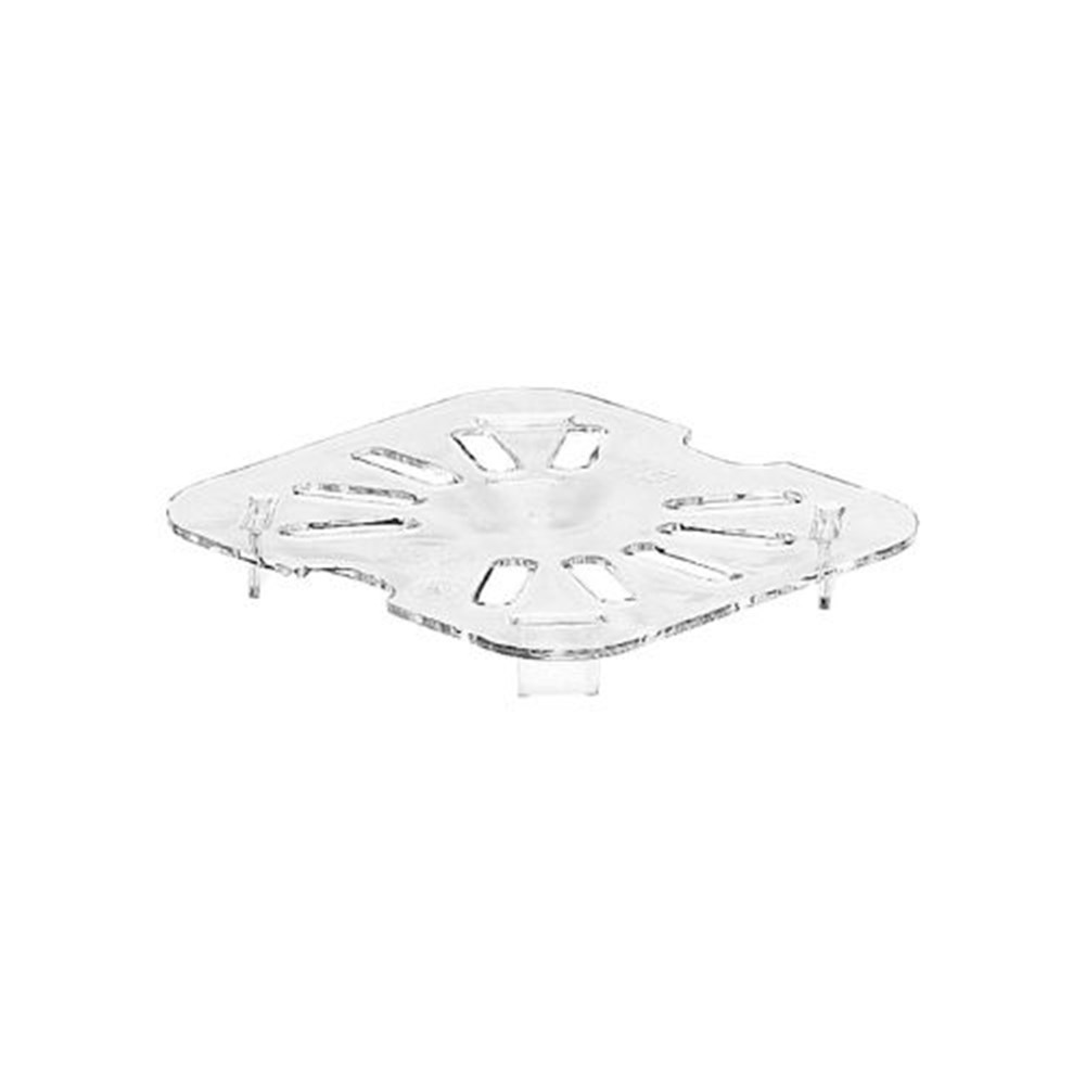 With its clear polycarbonate construction, the Drain Shelf 1/6 Clear Cambro allows for easy visibility of contents while providing excellent resistance to breakage. This practical solution is ideal for commercial kitchens, offering a reliable way to store and maintain food quality.
