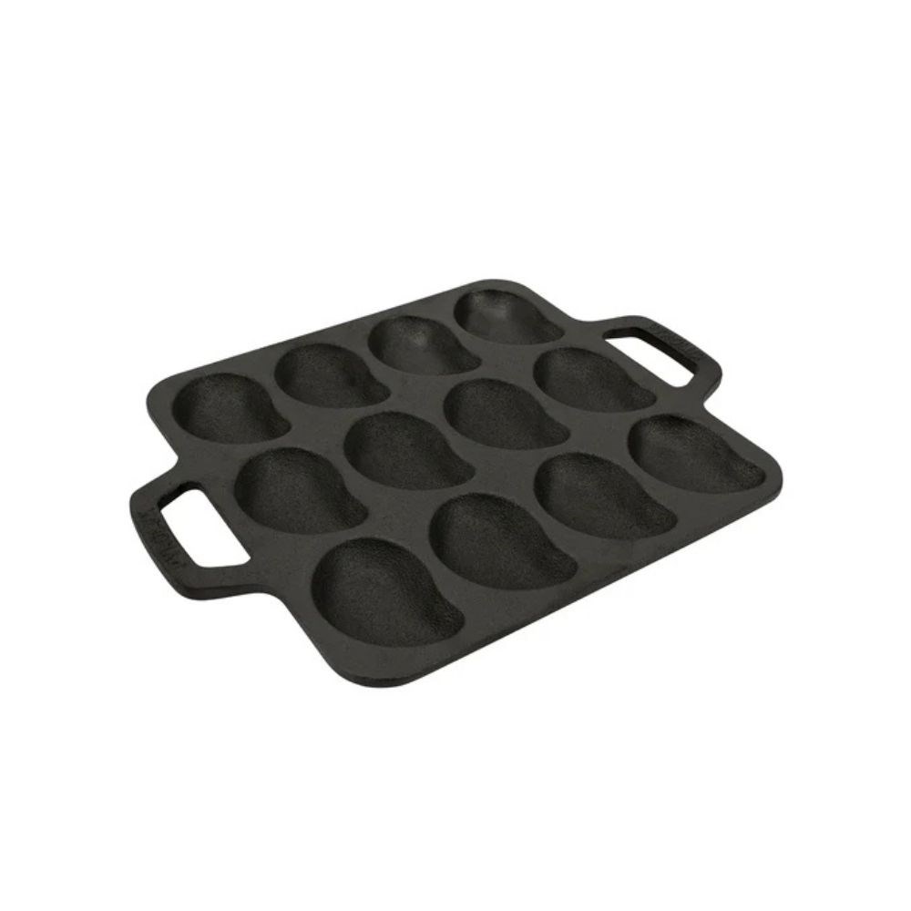 Crafted from heavy-duty cast iron, this tray offers exceptional heat retention and even cooking ideal for searing, grilling, and roasting. It's suitable for all heat sources including induction, ceramic, gas, and campfires. Pre-seasoned with a black patina for rust resistance, this oyster tray only improves with age and use.
