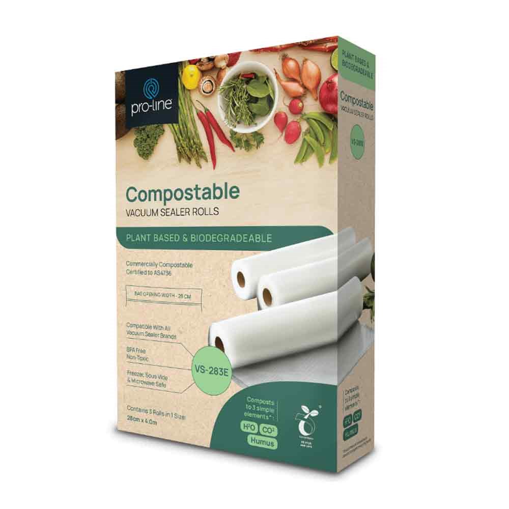 The Vacuum Seal Bag Rolls Compost 280mmx4m Pro-line brings eco-friendly innovation to food storage, combining the strength and reliability of traditional vacuum bags with sustainable, plant-based materials. Designed to perform like standard plastic, these biodegradable rolls maintain the freshness and longevity of stored food without harming the environment.