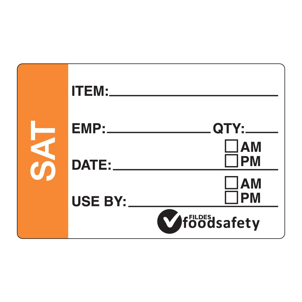 Fildes 49 x 75mm Dissolvable Prep Label "MON". combines colour coded day of week with prep label allowing for important prep information including the item, date prepared and use by date to be recorded. Not suitable for fridge or freezer applications.