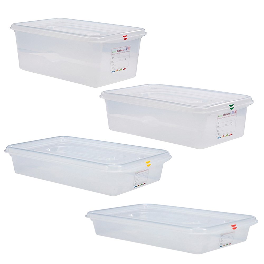The Gastronox Airtight Containers 1/1 with Lids keep ingredients fresh and organised. These containers are made of BPA-free material, ensuring they are safe for storing food. They feature an airtight, double-edge closing system that keeps food fresh for longer. The containers are designed to withstand temperatures ranging from -40°C in a freezer to 100°C in a microwave (without the lids). They also comply with HACCP regulations, featuring a colour-coded identification set for food safety.
