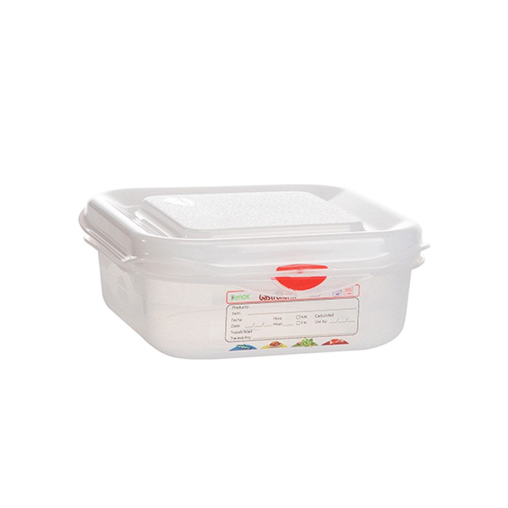 The Gastronox Airtight Container features a double lip cover for a secure closure, along with a translucent cover that provides high transparency for easy visibility of its contents. It is stackable, allowing for space-saving storage in the kitchen. An integrated food identification label enables tracking of food traceability. It is also dishwasher safe for easy cleaning, making it ideal for restaurants, bakeries, cafes, pastry shops, and catering services.