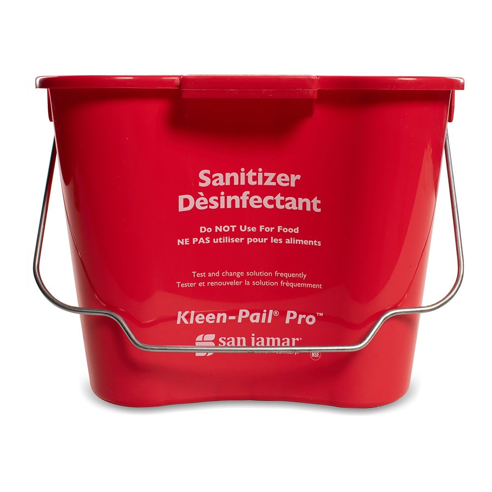 This Red bucket in the Kleen-Pail Pro 8 is used for sanitiser products in professional and commercial cleaning environments. With graduated markings to help ensure proper chemical dilution ratios are in place, this bucket also meets health code guidelines as it is easily identifiable as a non-food container.