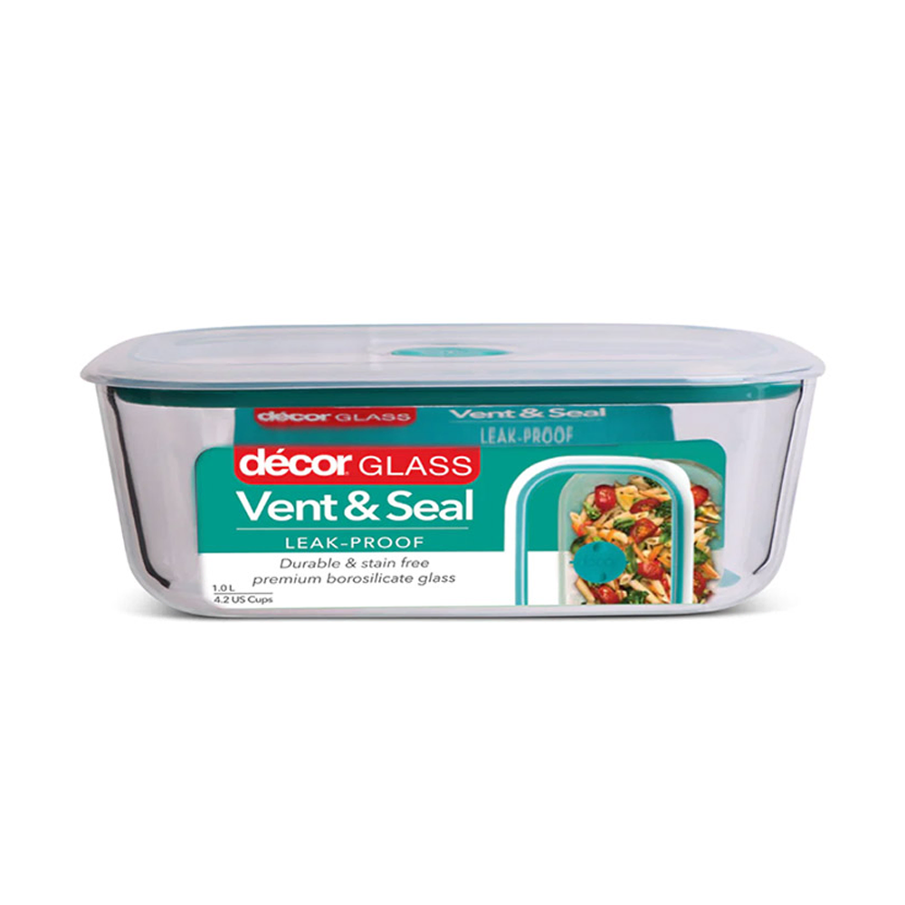 Vent & Seal Oblong Container 1L 192x135x78mm Glass Decor 2663942