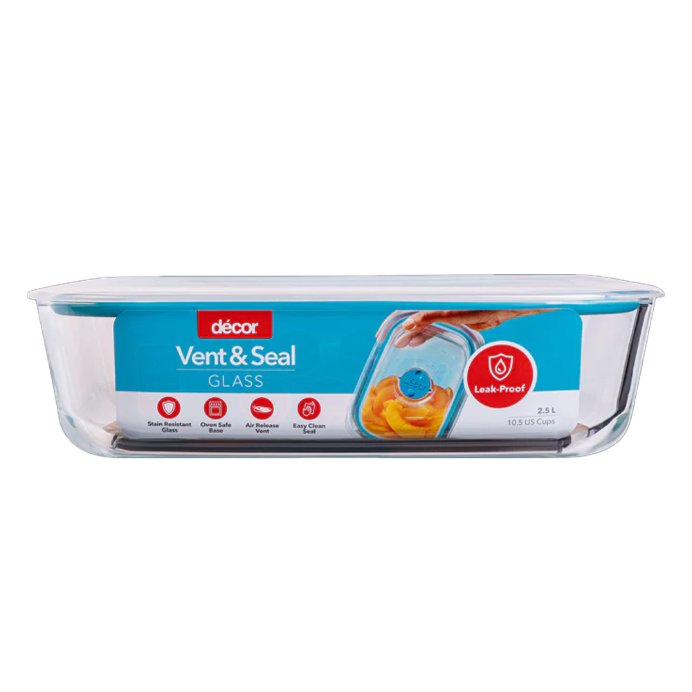 The Vent & Seal Oblong Container is crafted from durable, stain-free borosilicate glass, designed to help you organise your kitchen and reduce food waste. Featuring an airtight and leakproof seal, this container ensures no spills while keeping your food fresh for longer.