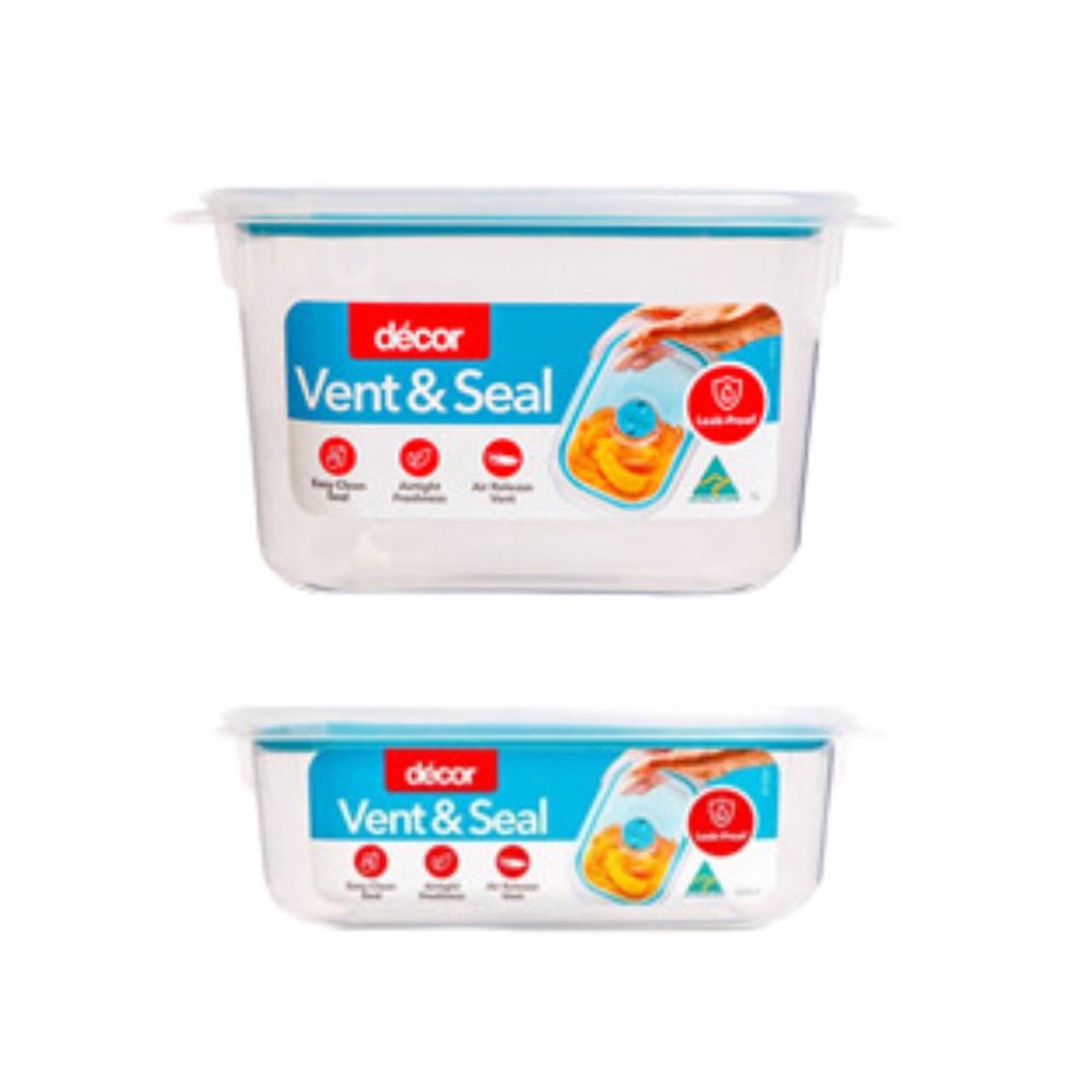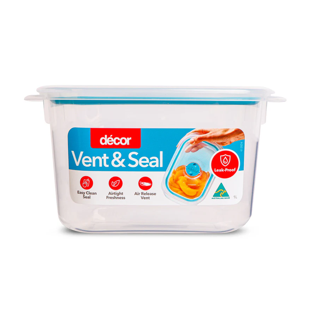 Vent & Seal Square Container 1L 210x134x51mm Plastic Decor 2663937