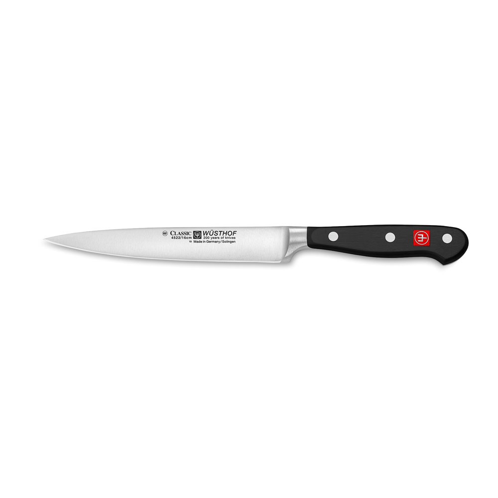 Classic 16cm Utility Knife Wusthof has been expertly forging knives for over 200 years and have established a worldwide reputation for producing outstanding products that have superior quality and functionality. This iconic range of knives is a go-to for the majority of professional chefs. With blades that have been forged from a single piece of steel and a triple-rivet handle, and a full tang for balance, these knives are both form and function.