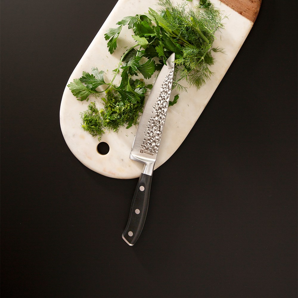 The blade's versatile 16cm length makes it ideal for a wide range of kitchen tasks from finely chopping herbs to carving large cuts of meat.