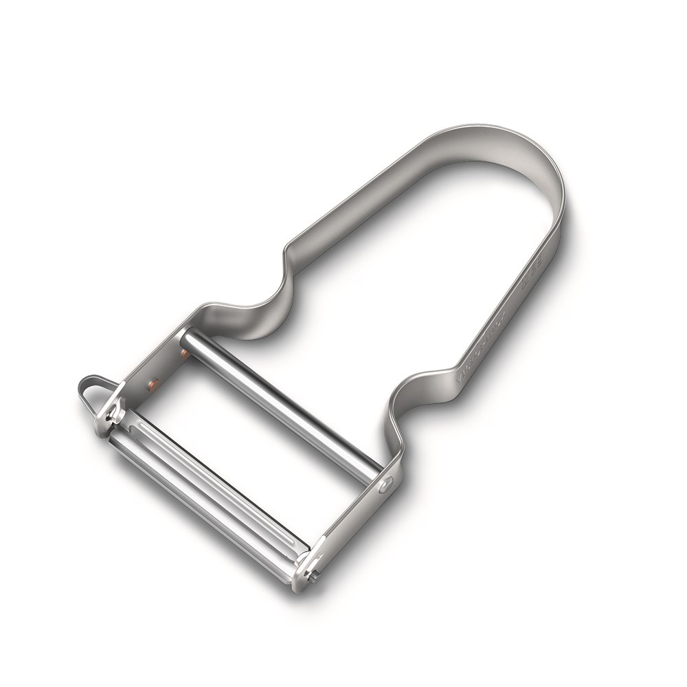 Crafted from durable stainless steel, this peeler is built to withstand the demands of busy kitchens, providing longevity and consistent performance. Its ergonomic handle ensures comfort during extended use, allowing chefs to maintain precision while reducing hand fatigue. Perfect for both small cafes and large restaurants, this vegetable peeler is a must-have for culinary professionals looking to streamline kitchen tasks.