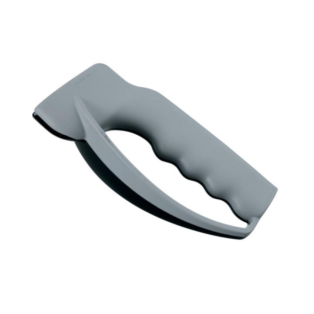 Pull-through knife sharpener, ensure your knives are always sharp. Encased in a plastic hand grip to keep fingers and hands safe while quickly sharpening the knives in your kitchen.