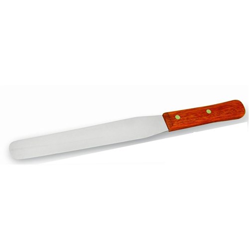 Straight Spatula with nonslip wooden handle and flexible stainless-steel blades with rounded tips that help spread batter to the edges of round pans.