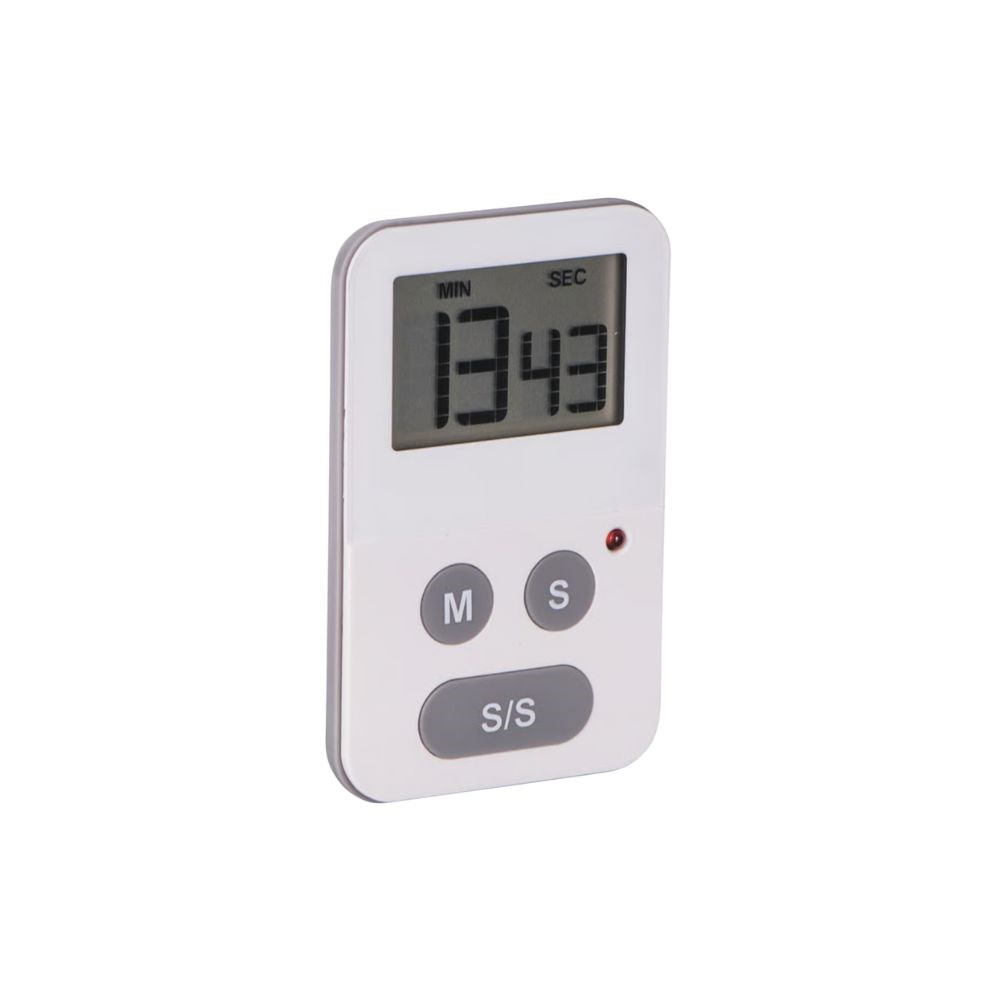 Compact and reliable, the Digital Timer 99min 59sec White with Light by Avanti makes kitchen timing easy. With a clear LCD screen and a flashing red LED light, it ensures you won't miss the end of a countdown. The loud alarm is easy to hear even in busy environments, while the built-in magnet offers flexible placement on any metal surface for maximum convenience.