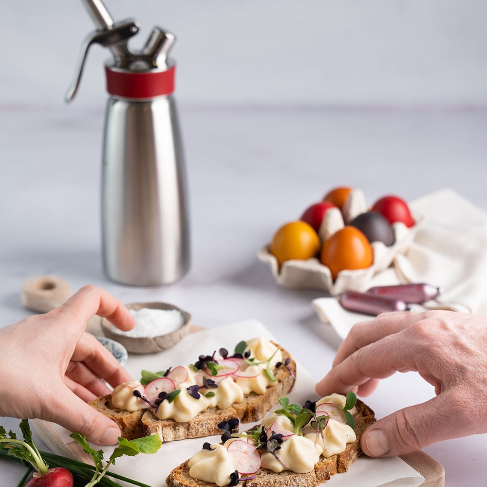 The iSi Cream Whipper Gourmet Whip has a 1L capacity that works great in prepping both hot and cold sauces and ingredients. A trusted brand, iSi has become the number one cream whipper manufacturer globally. It is perfect for prepping light and fluffy espumas, finger food, warm and cold sauces, whipped soups, whipped creams, and desserts. Ideal for bakeries, cafes, hotels, restaurants, & pubs, which can help prep bulk orders daily.