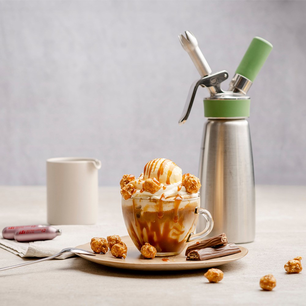 Suitable for professional use, the iSi Cream Whipper Eco Green Whip has a stainless steel bottle and head, making it resistant to dents, corrosion, and wear. The head has a protective silicone grip and removable stainless valve, for easy cleaning and maintenance. This cream whipper is suitable for dishwashing for fast and efficient cleaning.