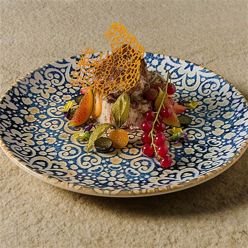 Add a touch of Mediterranean charm to your tabletop with the Alhambra Flared Round Bowl 230x45mm by Bonna. Ideal for bars, cafés, pubs, and restaurants, this flared bowl showcases a mosaic design in crackled blues, creams, and caramels that enriches any food presentation. Its form and wide rim make it ideal for serving salads, pastas, rice dishes, and shared plates with style and distinction. The Alhambra bowl enhances the visual appeal of every dish while meeting the practical needs of busy hospitality venues.