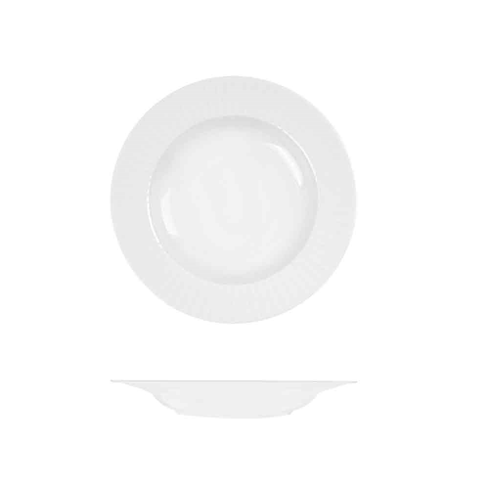 This Metropolis 260mm Round Bowl by RAK Porcelain is a sophisticated and stylish choice for any dining setting. Featuring a crisp white surface with wide, panelled rims, this bowl adds a contemporary touch to any table. The generous 260mm size makes it ideal for serving large meals and desserts, while the refined design elevates the presentation of each dish.