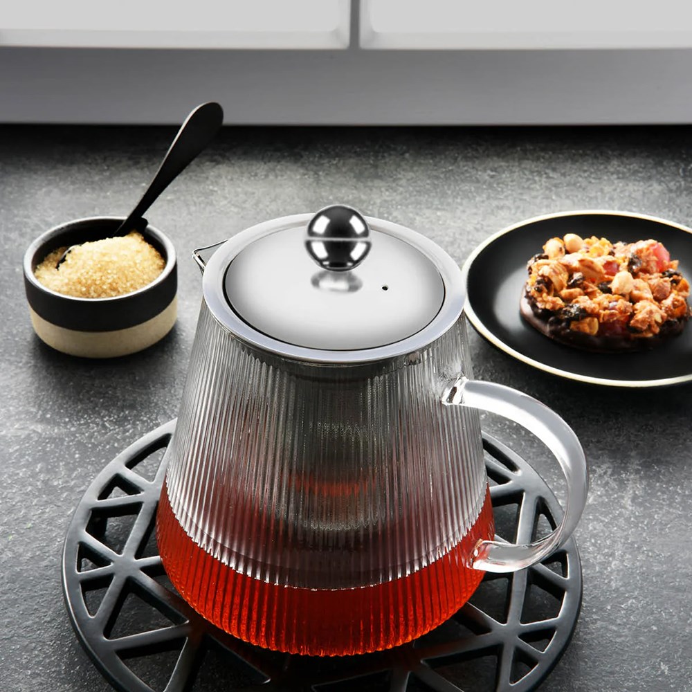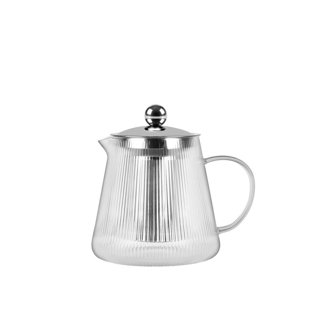 Elevate your tea service and impress your guests with the Brew Infusion 600ml Vertical Stripes Teapot. A modern alternative to traditional designs, this chic teapot will add a touch of sophistication to any style of table décor and is the perfect addition to your servingware collection. Designed for users of all ages, the ergonomic handle and precise spout ensure a comfortable and controlled pour to provide a smooth drinking experience. The generous 600ml capacity and integrated loose-leaf infuser allow you to easily brew multiple cups of rich and flavourful tea for your customers. Crafted from high-quality borosilicate glass, this durable teapot is thermal shock resistant, making it ideal for use in busy commercial environments such as cafes and other dining venues.