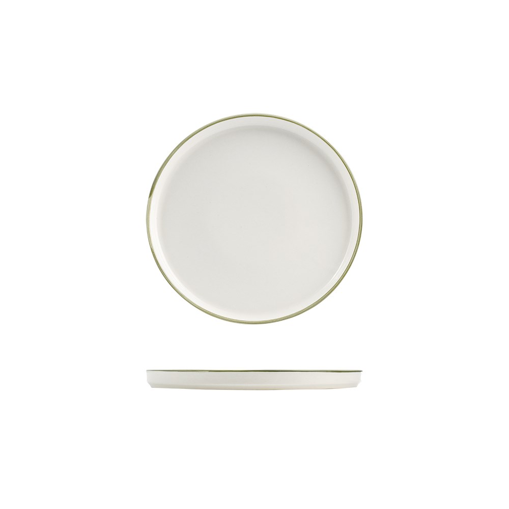 The Homestead 270mm Walled Plate features a soft creamy white surface with a hand painted olive band on all pieces in this range by NMC. This collection of sauce dishes, ramekins, plates and bowls combine elegance and functionality setting the perfect backdrop for your menu.