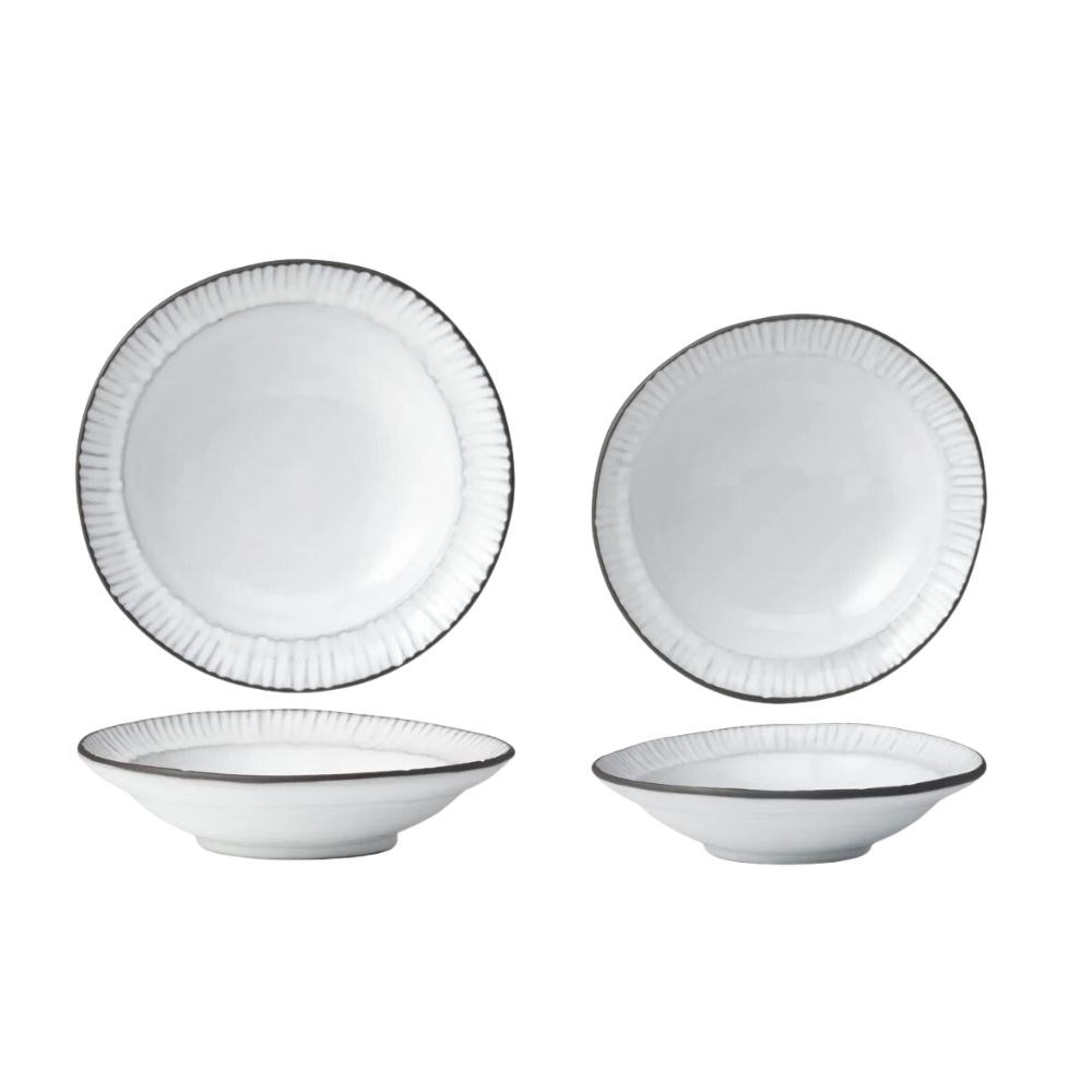 The Linea Organics Deep Plate White Tablekraft features a decorative irregular rim and tactile ridges, adding a unique touch to any table setting. Hand-glazed for a refined finish, it seamlessly complements the Tablekraft Linea White and Muse collections.