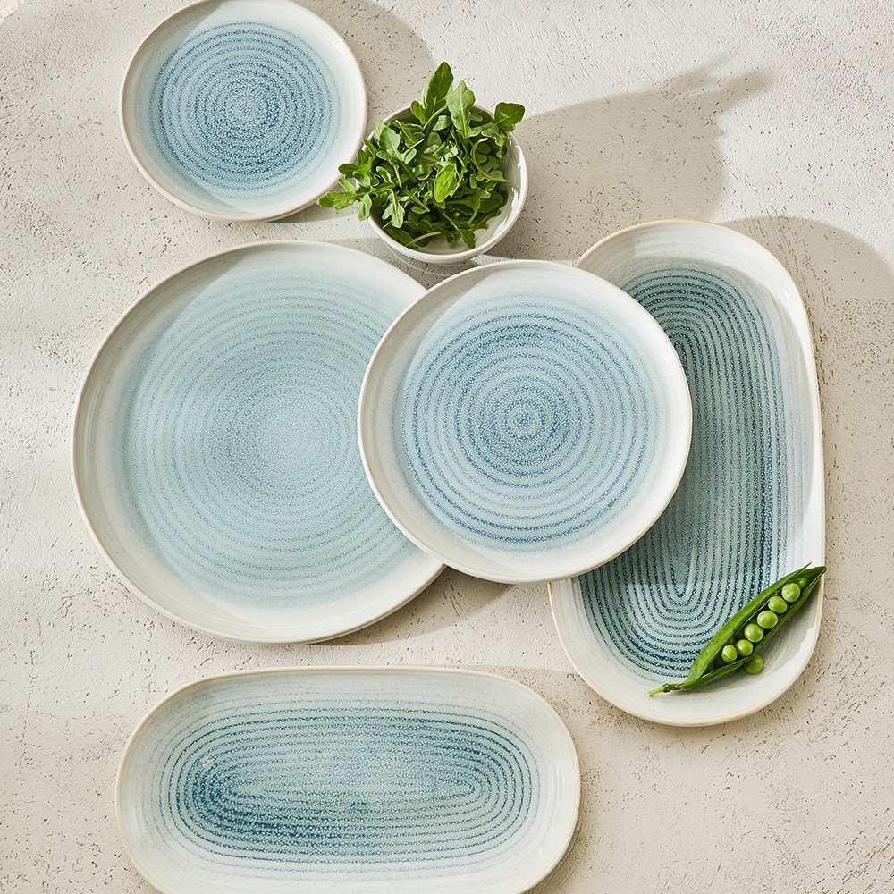 The Pro.mundi Pacific Oval Plate has a shiny finish that reflects light beautifully for a polished, elegant look. This also makes the surface easy to clean and resistant to staining. The plates are also dishwasher and microwave safe, offering convenience and easy maintenance for busy hospitality venues, including hotels, catering services, restaurants, and resorts. Each plate is unique due to the reactive glaze, giving the table a handcrafted feel that elevates the dining experience.