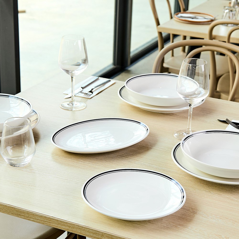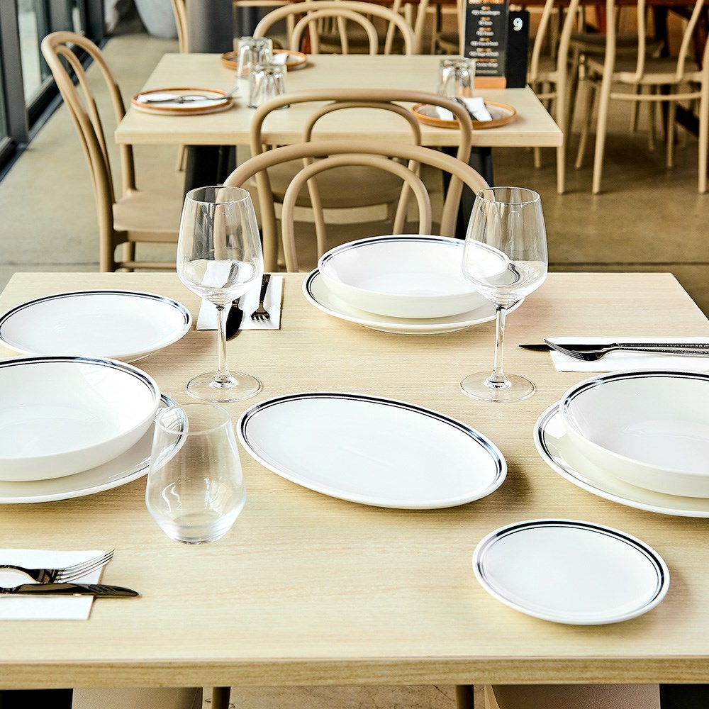 Inspired by the welcoming charm of classic diners and the refined elegance of Parisian bistros, the Plaza Oval Coupe Plates 285mm by Pro.mundi introduces a timeless aesthetic to professional dining settings. Their contemporary oval coupe design adds both distinction and versatility, making them an excellent choice for hospitality operators aiming to deliver relaxed yet elevated dining experiences.