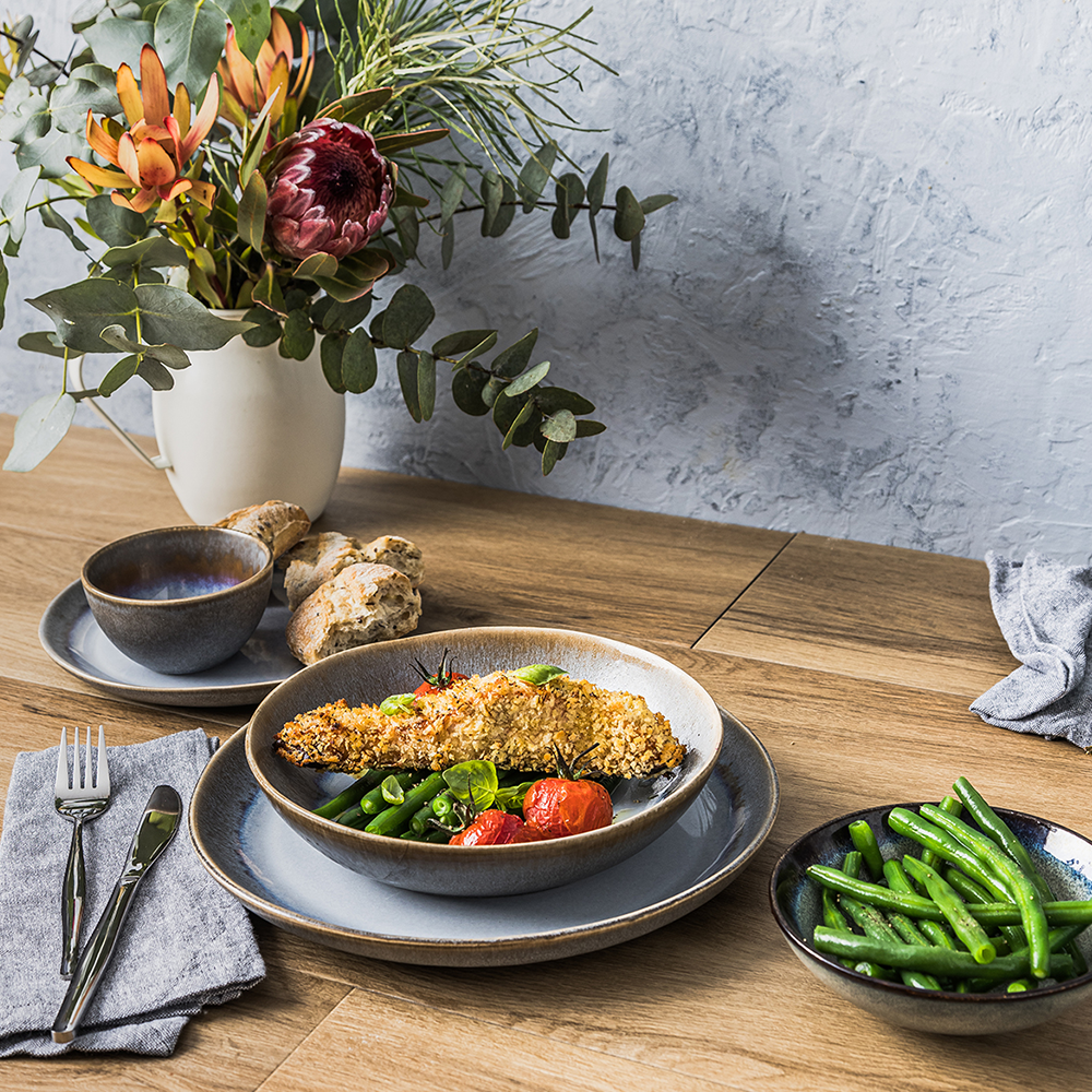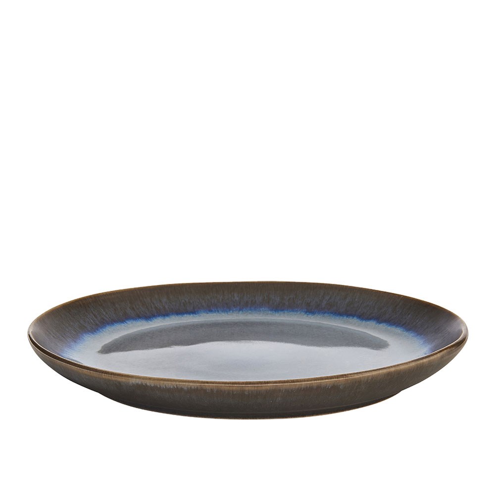 Discover the timeless elegance of the Snow Coupe Plate 270mm from the Pro.Mundi Snow range. With its generous 270mm diameter, this plate is perfect for presenting your signature main courses, such as roast meats, whole fish, or gourmet salads. Crafted from durable stoneware, it combines a sophisticated mix of glossy ice blue and matte earth brown enamel, bringing refinement and modern elegance to your table.