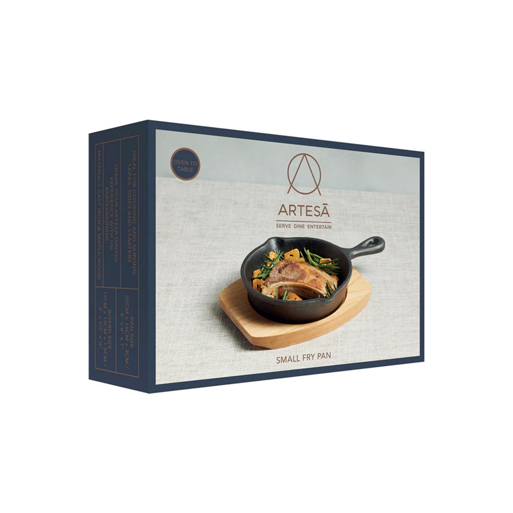 Perfect for single-serve portions, the Artesa Small Frypan Cast Iron supports creative menu development. Easy to maintain with a hand-wash skillet and wipe-clean board, this set delivers durability, style, and functionality.