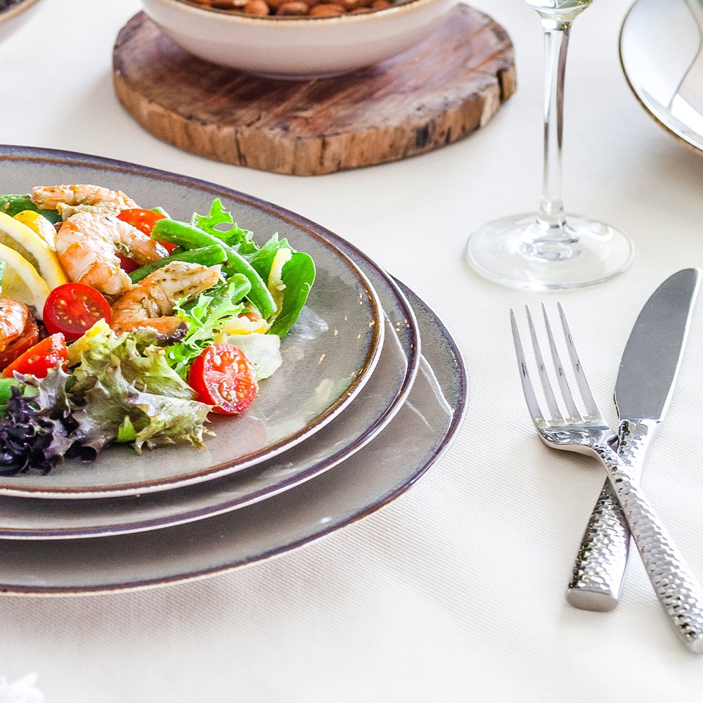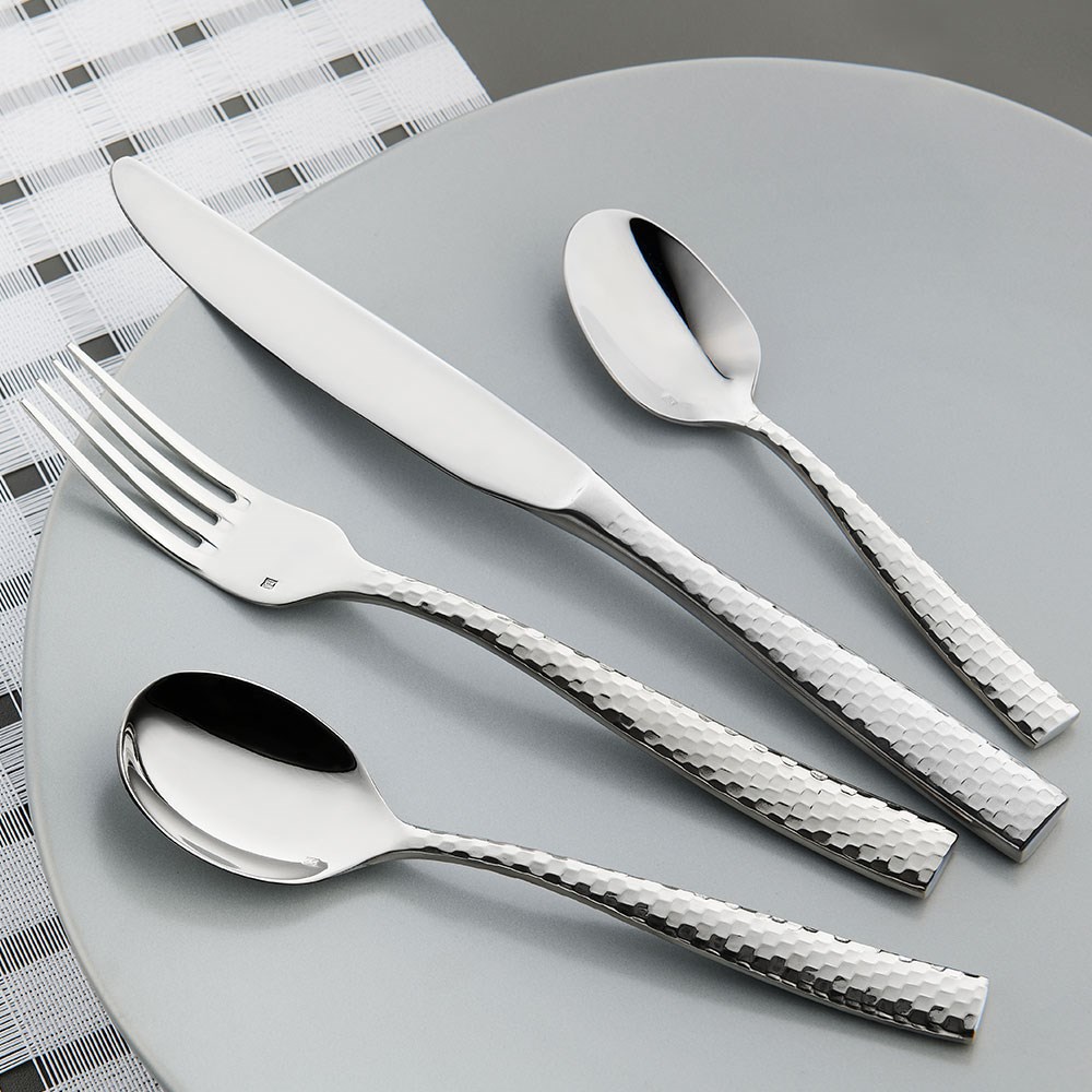 Treat your tabletop to this graceful and modern Lucca Faceted cutlery range. The 203mm silver Table Fork is designed with an improved grip and textural detail. Made from heavy-gauge 18/10 (the heaviest gauge used for tableware), each implement provides a comfortable heft and balance in your hand.