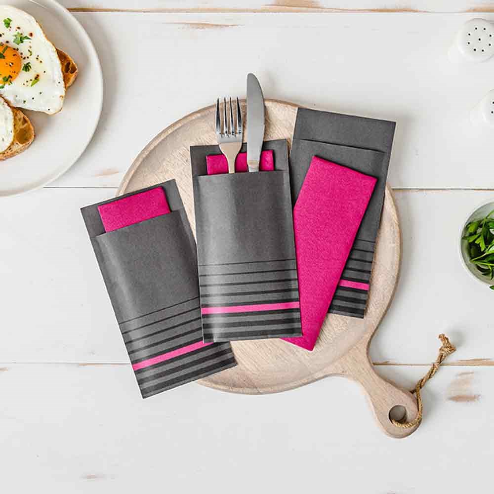 Isi Paper Cutlery Pouch Grey/ Raspberry 200x100mm Pro.mundi