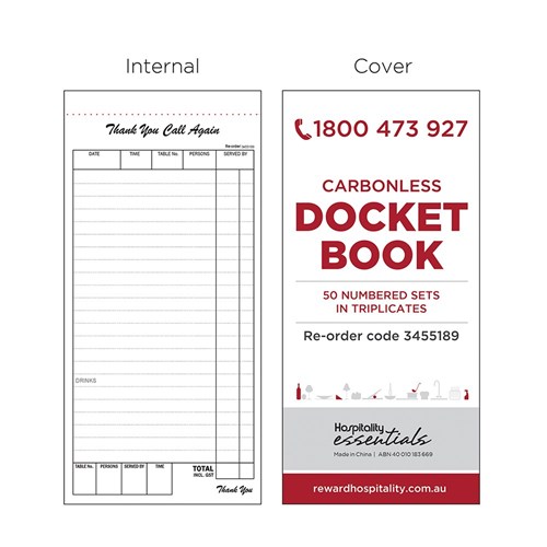 Restaurant Docket Book Single Sheet 100x210mm Essentials Collection 3455190