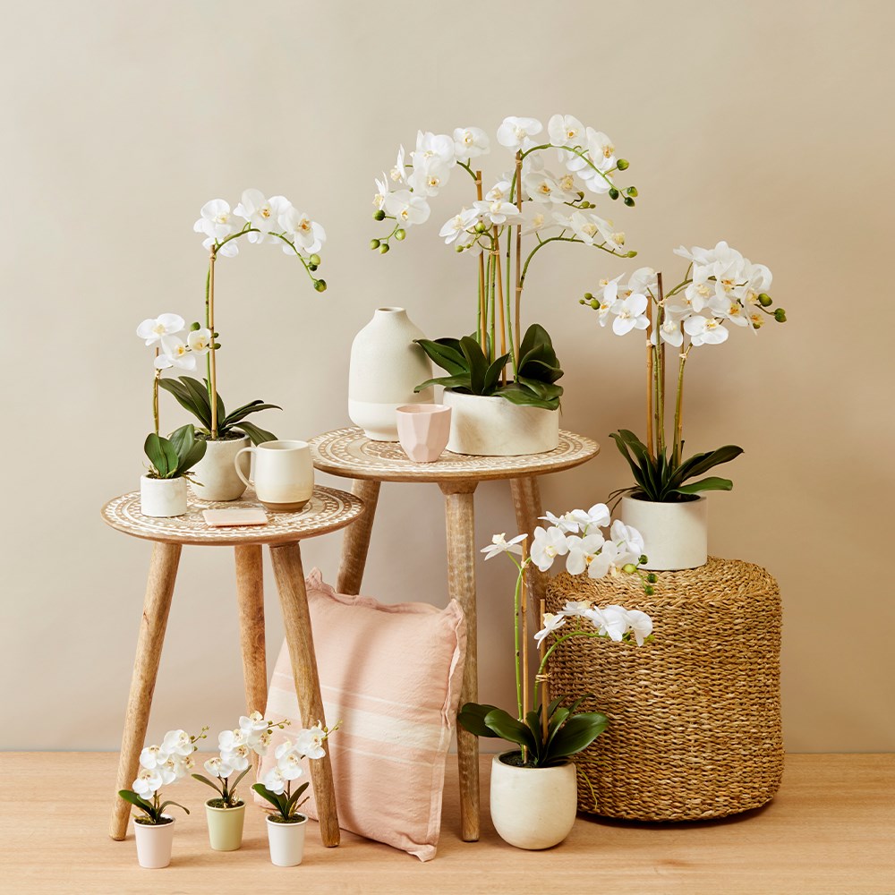 A beautiful decorative addition to any room! Display this beautiful artificial plant on your dining table, coffee table or reception desk. Be blown away by the realistic colour and texture of each plant which boasts impeccably lifelike phalaenopsis components. This lifelike creation mirrors the delicate allure of real orchids with meticulous attention to detail, ensuring a captivating display that will never fade or wither.