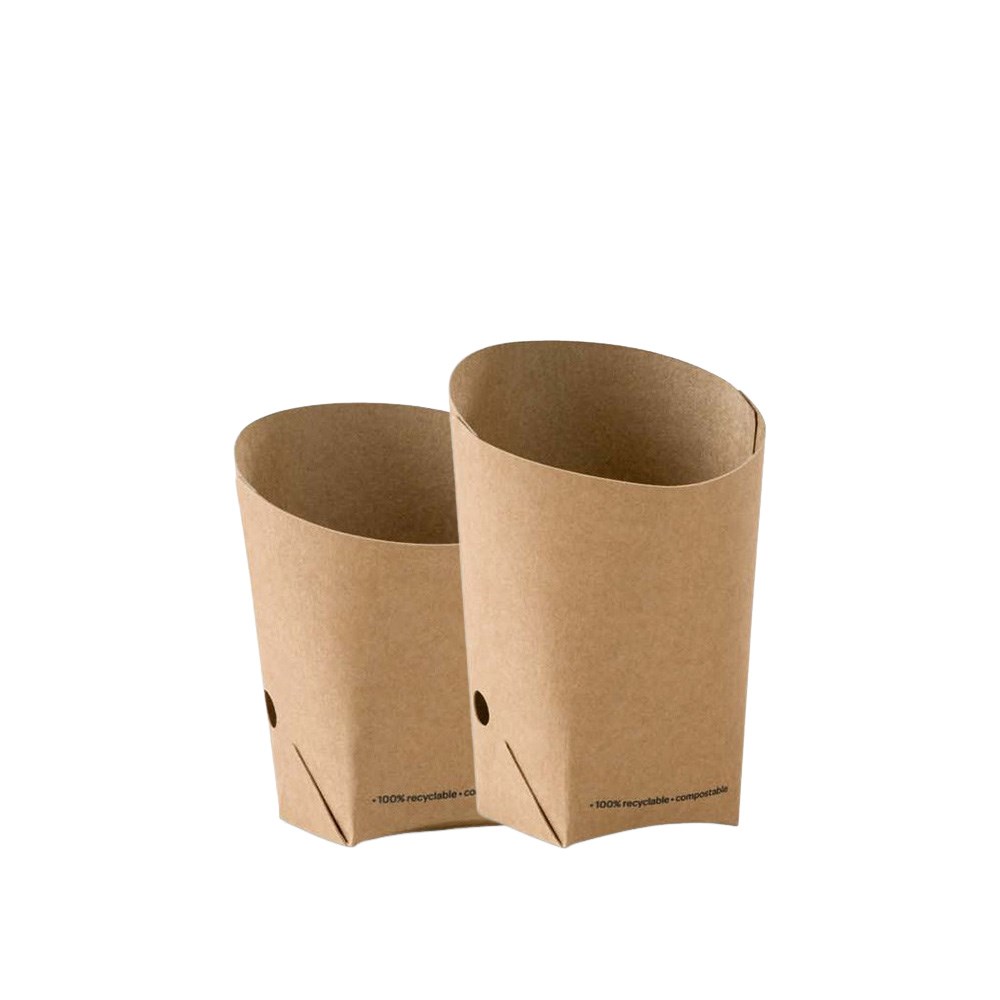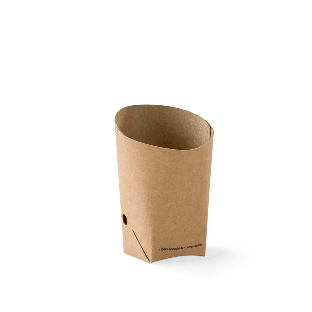 The Go Chip Scoops in kraft by Detpak offer practical solutions for upright chip presentations in fast-paced foodservice environments. Crafted for efficiency, these packs are ideal for food trucks, cafés, and takeaway operations looking for streamlined service and visual appeal. Custom printing is available to elevate brand visibility and deliver a cohesive customer experience.