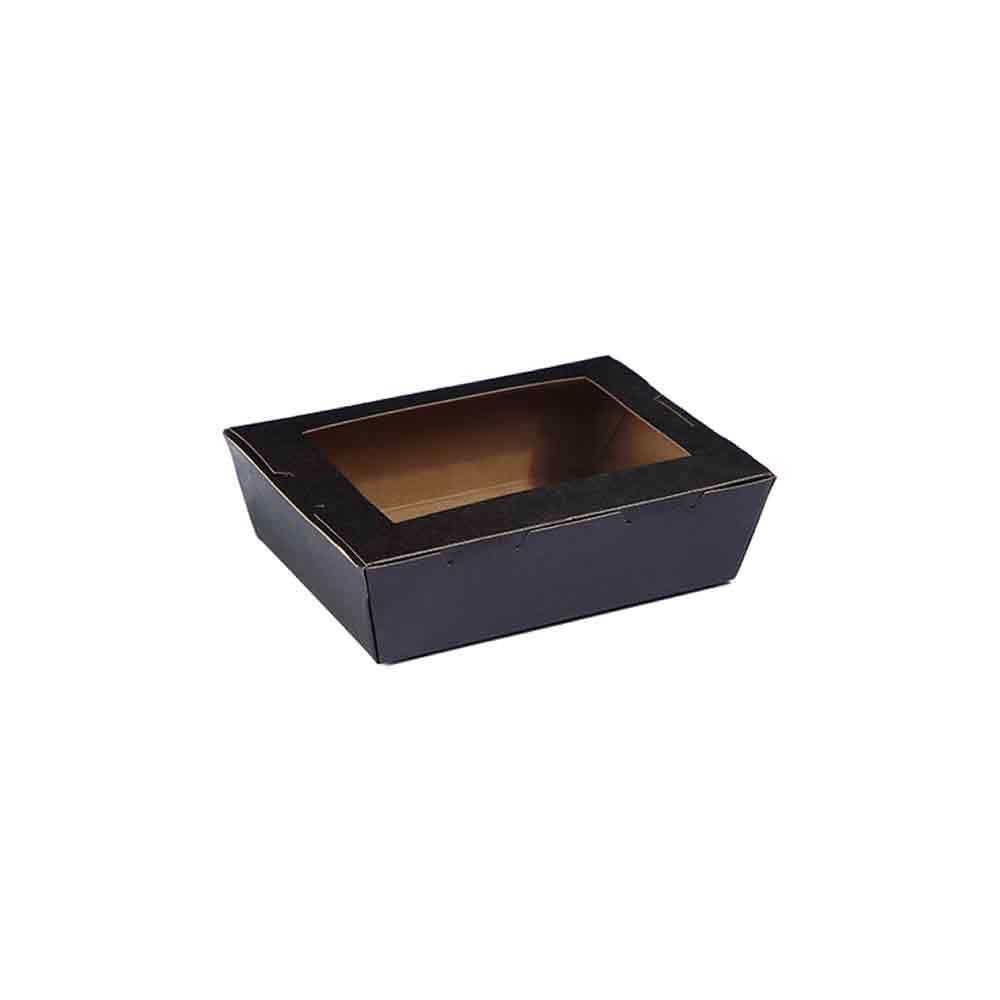 These Window Lunch Boxes are available in four sizes and are made of sturdy cardboard construction to ensure food is secure during transportation. The black finish makes a statement with a matte finish that exudes sophistication and professionalism.