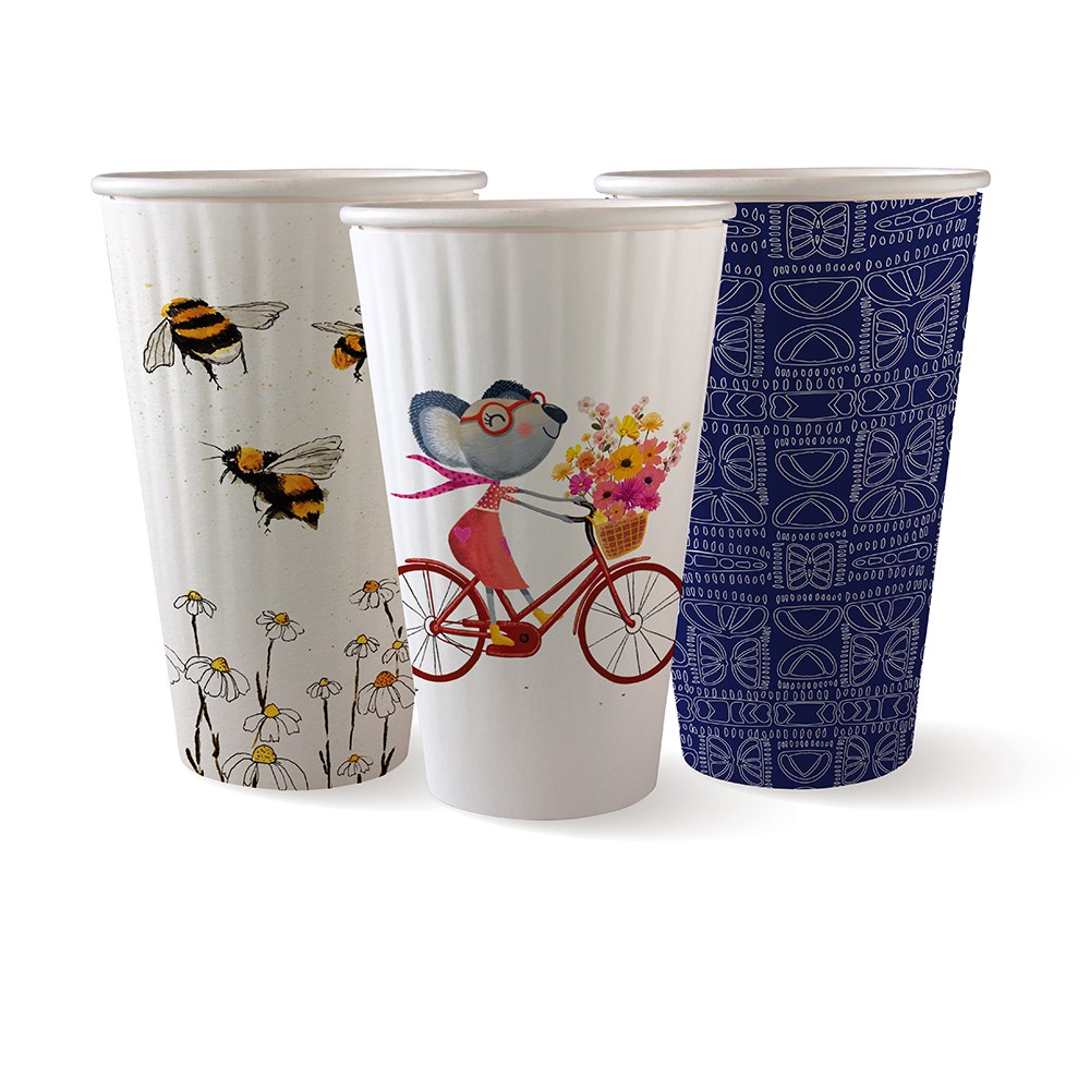BioCups Art Series of Cups are available in Double or Single Wall variants with a one-size-fits-all lid sold separately.