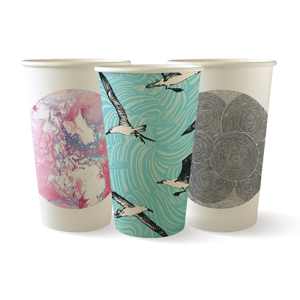 BioCup Art Series Single Wall Coffee Cups 90mm BioPak Multiple Options