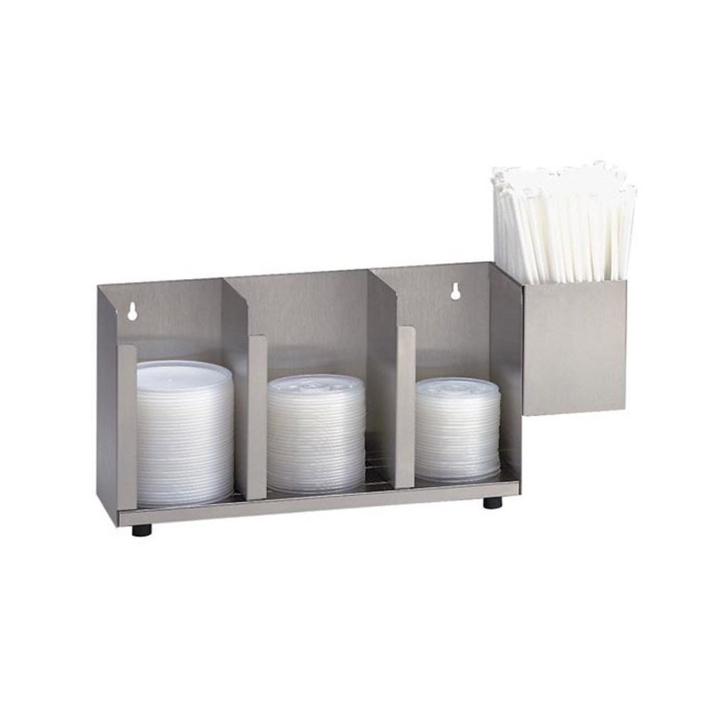 The Cup & Lid Organiser Countertop Dispense-Rite is a versatile storage solution, perfect for organising cups and lids ranging from 6 oz. to 44 oz. This durable stainless steel organiser features adjustable section dividers, allowing for the accommodation of various lid sizes and ensuring optimal organisation.
