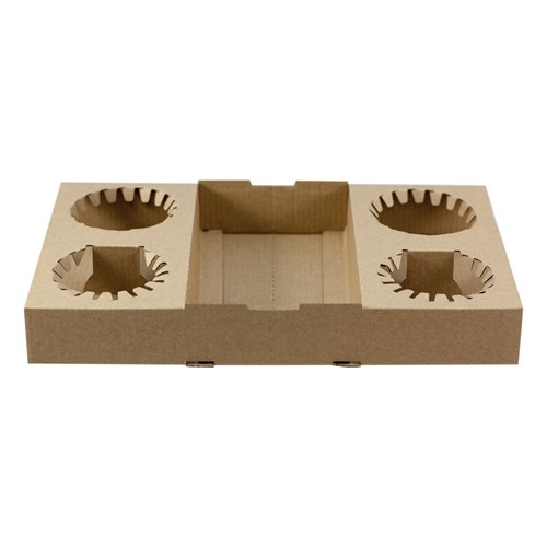 Four Cup Drinks Tray Brown Capri is a versatile and eco-friendly solution for carrying takeaway beverages. Made from durable E-flute cardboard, it features a centre console for extra storage and can be split into two carriers for use as a two-cup or four-cup tray.