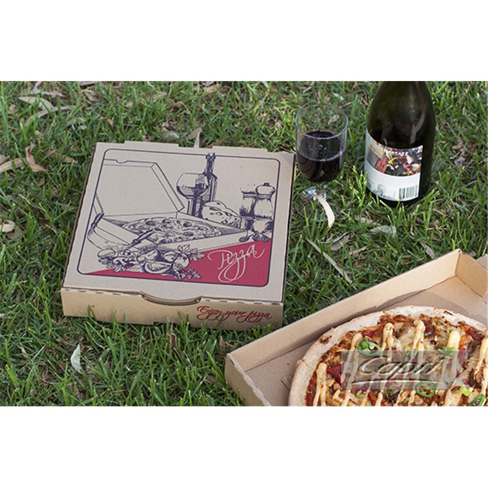 Present your perfectly prepared pizza in the perfect sized box. The brown printed pizza boxes by Capri come in a variety of sizes with a traditional style illustration on the box top that will align with your restaurant or take-away venue.