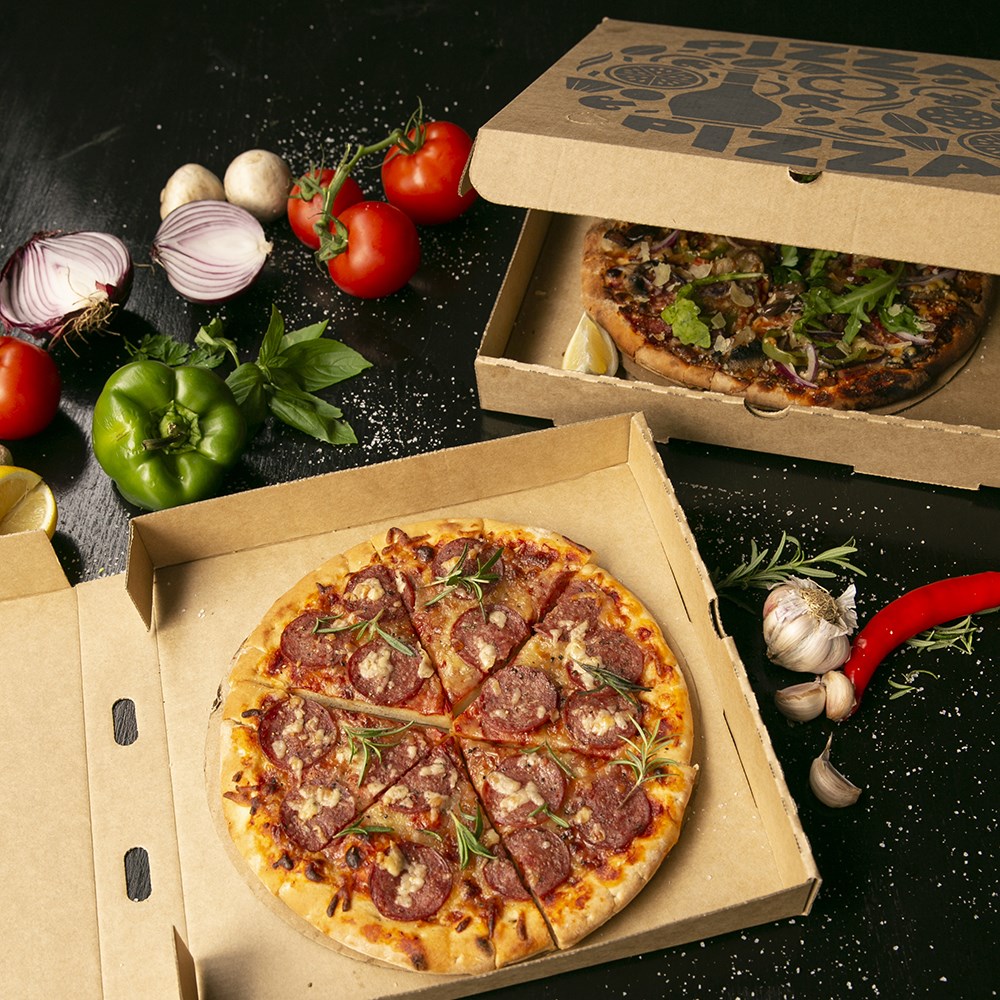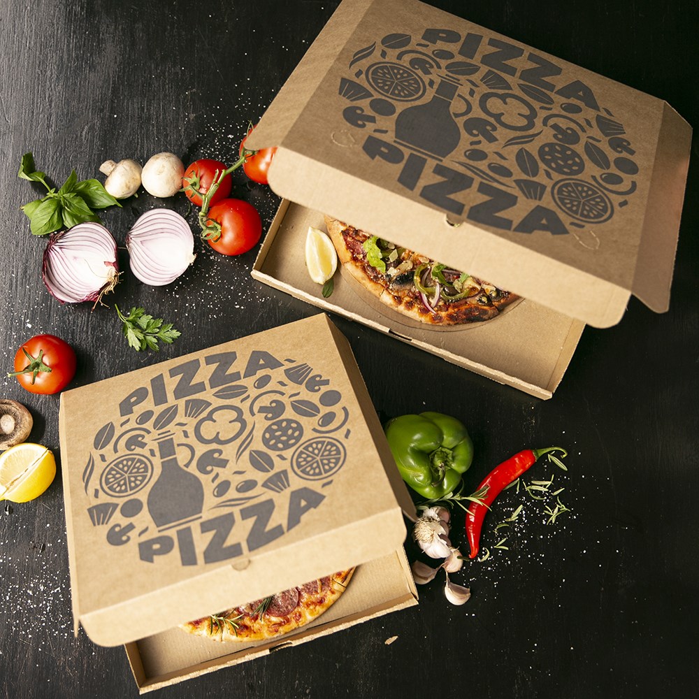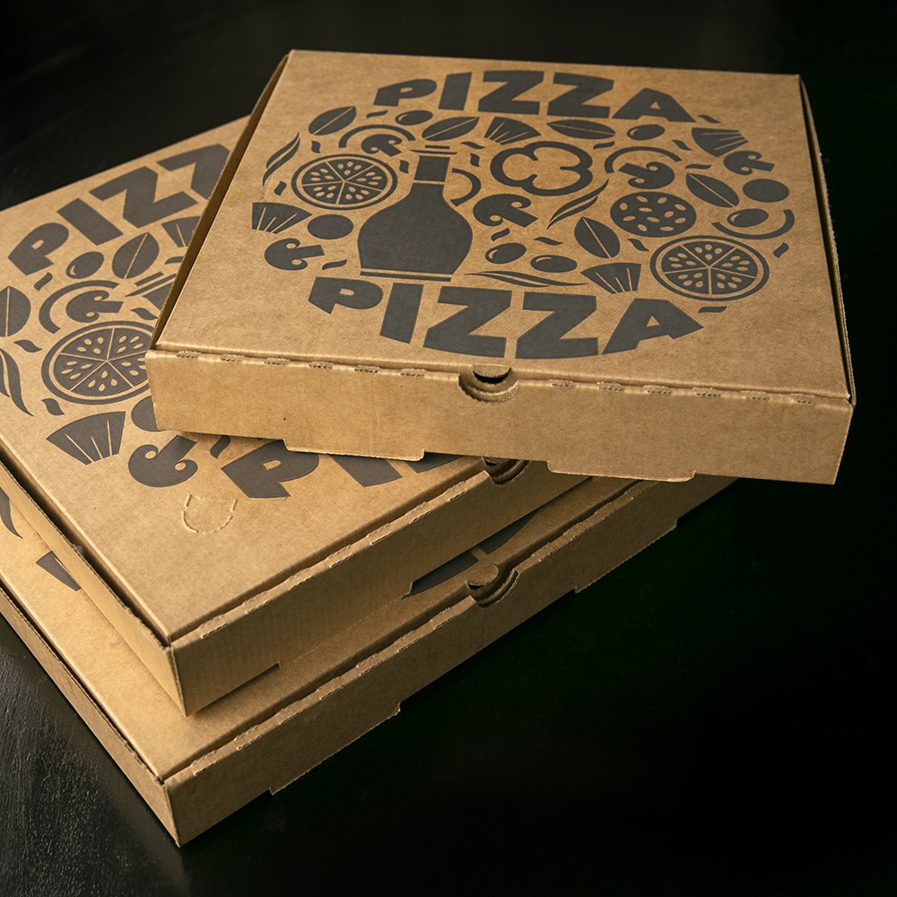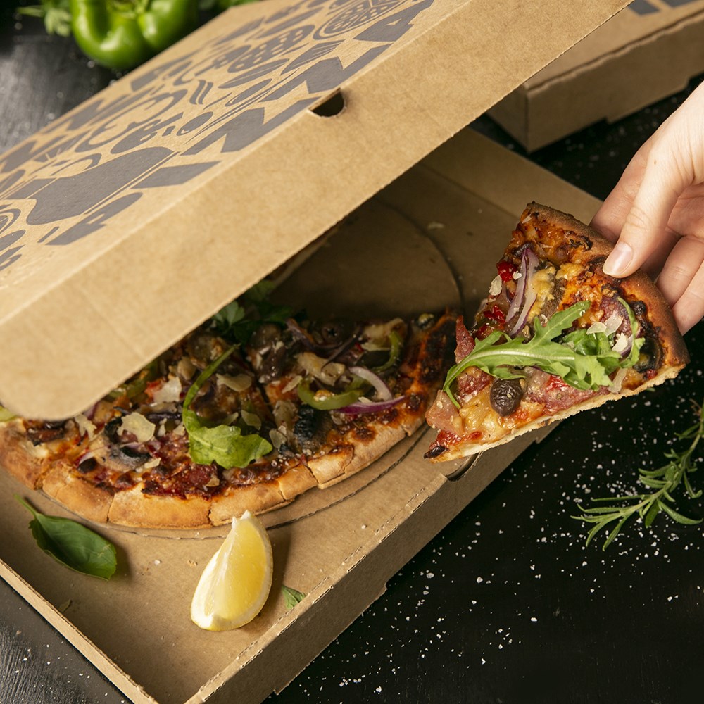 These pizza boxes are made from FSC certified paper. This means the material is sourced responsibly by managed forests ensuring biological diversity and benefits to the local people and workers. Further to this, the strong craftmanship is from E flute board which is commonly used for food packaging. The corrugated build ensures a strong and sturdy pizza box while still being thin enough for easy storage. E flute boards are suitable for printing and commonly used to manufacture lightweight retail cartons.