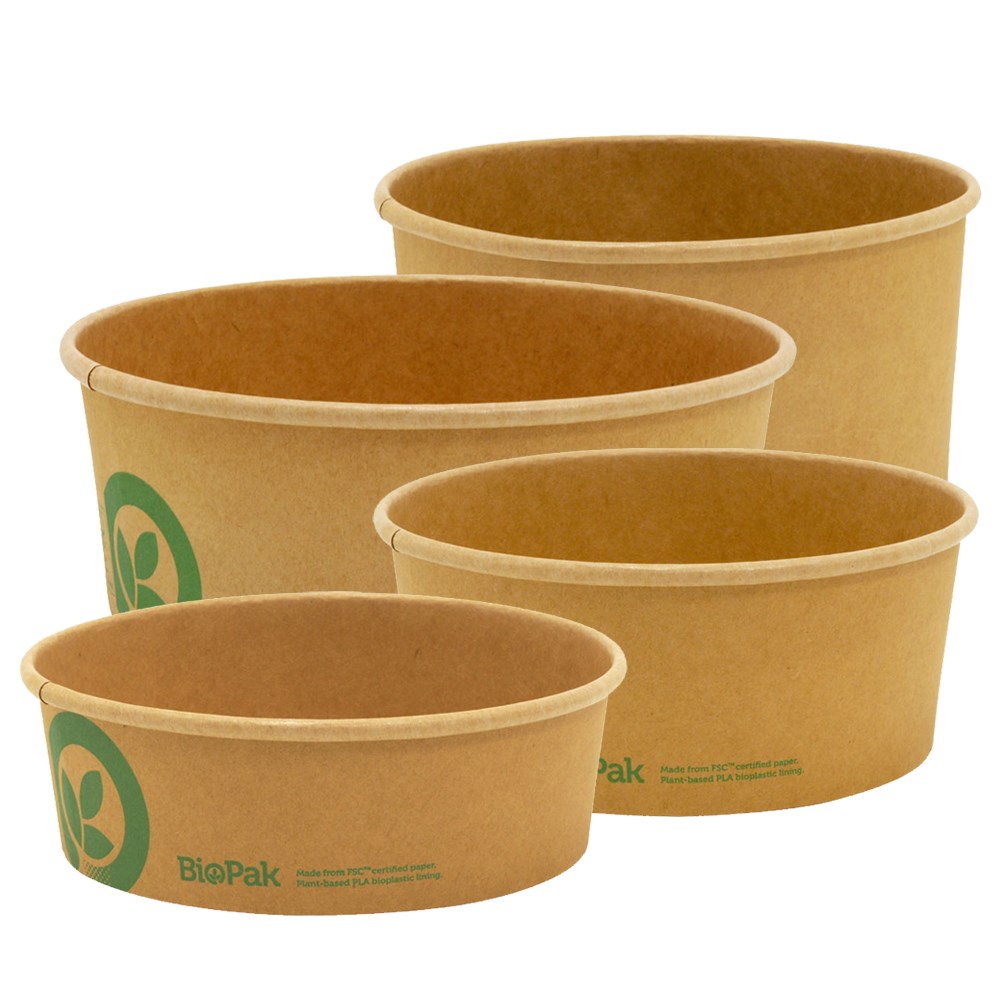 BioPak's Kraft BioBowls are made from premium paperboard and lined with Ingeo - a lining maed from plants, not oil. This range features a wide design making them functional and ideal for presenting the meals or ingredients withing. The eco-friendly range also seals tight making them suitable for takeaway food or deliveries and the packaging is certified industrailly compostable.
