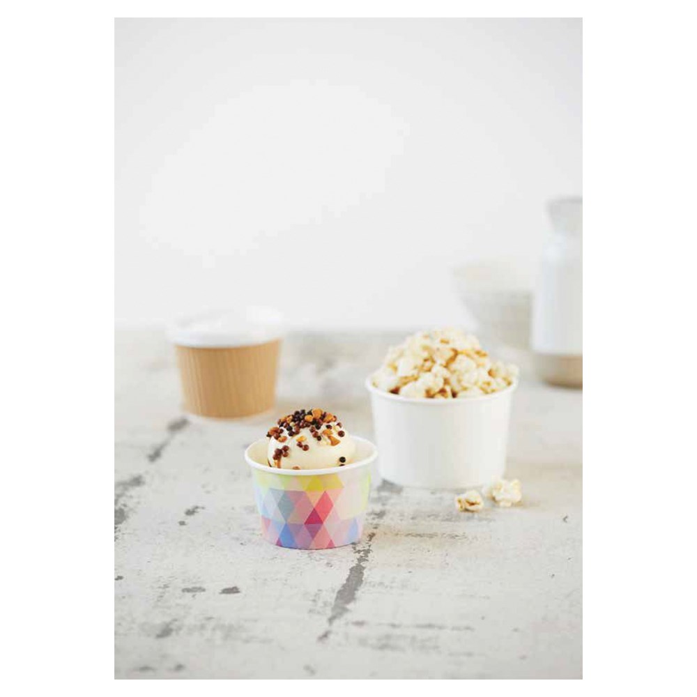 Poly-lined on the inside and outside to protect against condensation and making them a versatile choice for serving hot, cold and frozen foods such as soups, pasta, noodles, rice, salads, yogurts and ice cream.