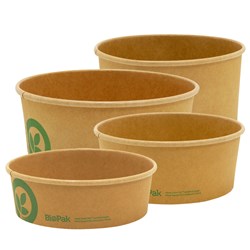 BioBowl Kraft Bowls & Lids BioPak Multiple Options