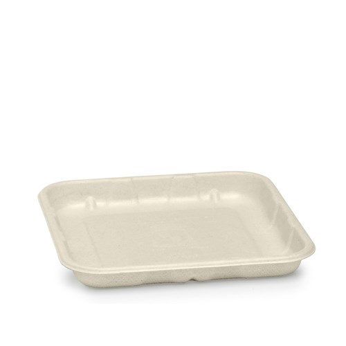 If you are looking for the convenience of disposable products with an eco-friendly option, look no further than this BioCane Natural Produce Tray by BioPak. The BioCane range products are made from rapidly renewable sugarcane pulp, a by-product of the sugar refining industry. With a strong, grease, and water-resistant construction, this product is a perfect alternative to traditional plastic or polystyrene trays. Protect and add shelf life to fresh food with this versatile design plastic-free tray! This range is certified home compostable.
