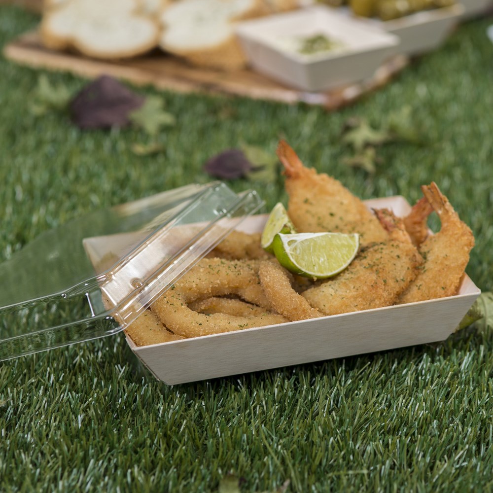 Made from Falcata wood, this commercial-grade box and lid is formed with a thin layer of wooden panel that is lined with glassine paper on both sides. This preserves the moisture of the wood to maintain a sturdy structure and keeps away wood dust to ensure it is food contact safe. This wooden box is both home and commercially compostable, and is 100% eco-friendly.