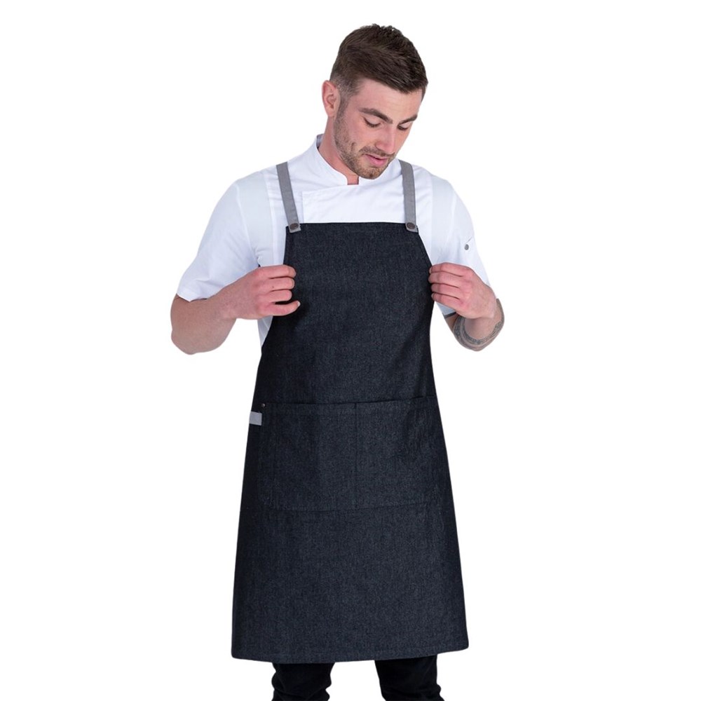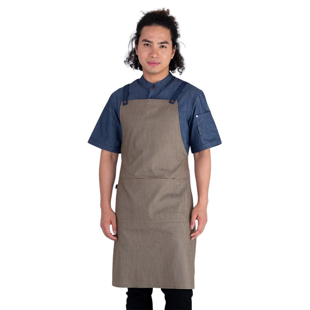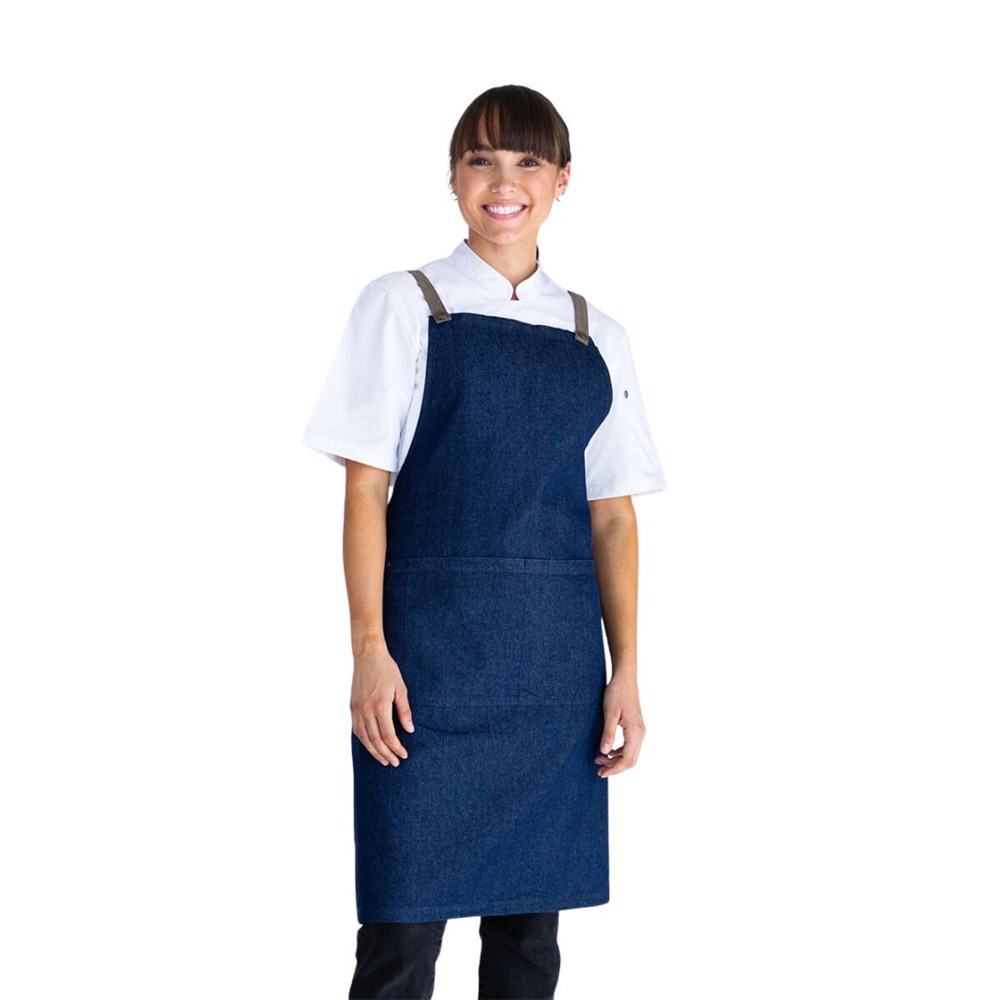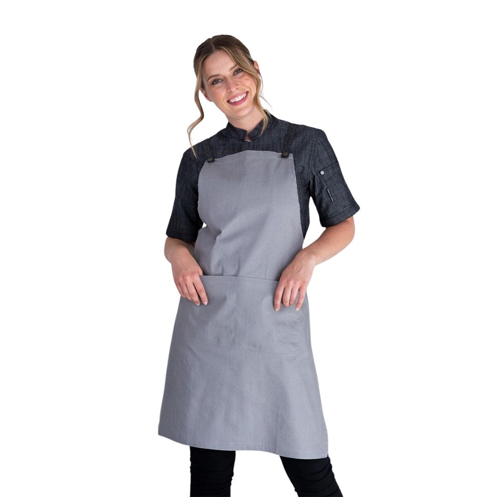 Featuring generous pockets for easy storage and removable cross-back straps for added comfort, the Bella Bib Apron ensures a great fit and lasting wear. Reinforced with eyelets, double-stitching, and metal rivets, this apron is built to withstand daily use while maintaining its sleek appearance.